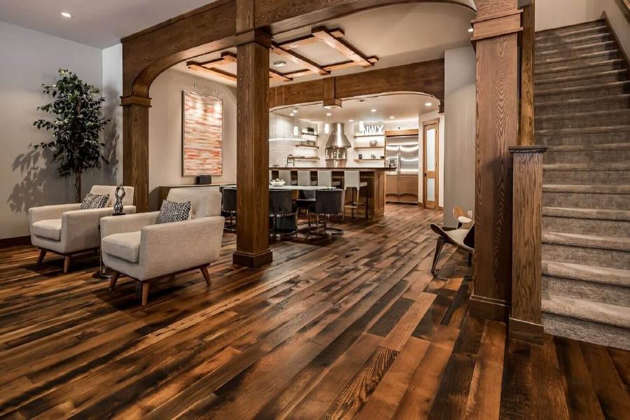 Reclaimed wood is the best flooring for renovating homes and commercial spaces, adding historic depth and a unique aesthetic. It is ideal for every room, even the high-traffic zones, and gives them an inviting, warm feel.